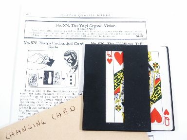 Will change one card into that of another and well made of brass. This is even equipped with a Queen of Hearts the same as in the catalog illustration. In first rate condition.