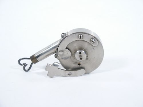These are very hard to come by and well built of metal and brass. The diameter is 2 1/8" with the pull length of 36". The swing arm lever which has a bevel edge that slides underneath the lock pin for the inside drum is absent a single screw that holds it in place, otherwise fine.