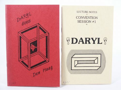 2 Magic By Daryl Lecture Notes: *Lecture Notes To Convention Session #1, 1986 Third Printing, wraps, 28 pages, illustrated. *Daryl Does Den Haag, wraps, 28 numbered pages with ad. Condition private collection identifier number on covers, otherwise very fine.
