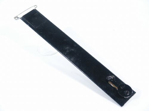 Made of metal and will hold six English pennies (not supplied). This works really well with just a press of the round peddle which has a Hallmark of maker of which I have not seen. Condition fine.