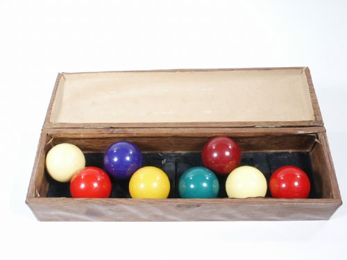 Eight billiard balls in 1 7/8" size in a variety of colors for the manipulator. This came from an European Collection and are ivorene type material. Condition very fine.
