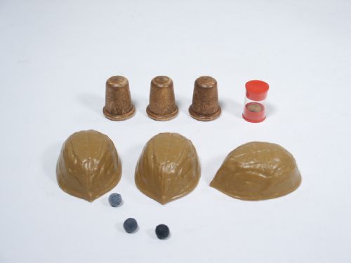 This includes 3 plastic walnut shells that have had work inside with filler and you also have 3 wooden thimbles for the similar find the pea routine. A fresh pea of sponge should be looked into. Includes illustrated Walnut Shell Game instructions. Condition very fine.
