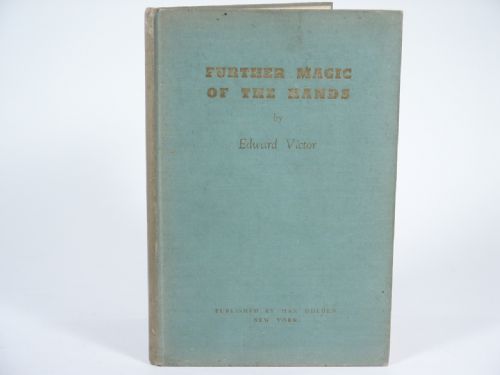 | Published by Max Holden. Edward Victor, 1946, cloth bound, gilt stamping, 112 pages, illustrations and photos. An explanation of new sleights and magical effects with *Cards *Coins *Ropes *Cigars *Thimbles *Cigarettes *Billiard Balls *Handkerchiefs and miscellaneous articles being a book dedicated "To all lovers of the art of sleight of hand". Chapters: Sleights and Aids in Card Work, Some Fresh Card Effects, On Coins, On Ropes, On Billiard Balls, On Cigars and Cigarettes, G W Hunter's Card Effects, Miscellaneous Effects. Condition light soil to cover, otherwise fine. | |