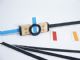 Typical of Magiro items this is uniquely different in effect. A well made wood tube 4" in length with a metal ring at its center portion is shown along with four strips measuring 11 3/4" that are black in color along with four smaller strips having a different color on each. A small color strip is placed through the metal ring and black strip shown both sides is inserted into one end of the wood tube in the opening just large enough for the strip. Pushing it through, it comes out the other end in the color which was placed in the ring! This is done again with a strip changing from black to the color. For a finish two color strips are placed in the ring and a black strip is inserted in one end as before and this time it comes out half and half with the two colors! Includes instructions in German and English Translation. The instructions are for an earlier model that used six long strips and 5 color cards but it was found that the fewer color strips made for a shorter and better routine. Condition very fine.