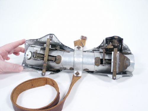 This is made of metal and 14" in length having a leather buckle strap that could go around a person's waist. I have never seen such a contraption of mechanical ingenuity and function. There are levers that kick out of openings possibly for delivery of balls and sliding panels and workings like you've never seen before! It appears that the ball dimension could be as much as 2". If you acquire this, you will have something to show your fellow Magician Collectors something they will not likely see in any other collection. Condition on one end there is some wear to metal.