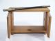 This solid wood cabinet measures 8 1/4" wide x 5 1/4" high x 3 1/8" deep having two doors at front and an open back with rod that runs horizontal through the cabinet. In a mysterious manner, rings that may be borrowed may penetrate onto the rod while ends are seen at the outside of cabinet. Rod is special in the way it may be slightly moved aside for penetration. Condition fine.