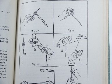 | Published by Max Holden. Edward Victor, 1946, cloth bound, gilt stamping, 112 pages, illustrations and photos. An explanation of new sleights and magical effects with *Cards *Coins *Ropes *Cigars *Thimbles *Cigarettes *Billiard Balls *Handkerchiefs and miscellaneous articles being a book dedicated "To all lovers of the art of sleight of hand". Chapters: Sleights and Aids in Card Work, Some Fresh Card Effects, On Coins, On Ropes, On Billiard Balls, On Cigars and Cigarettes, G W Hunter's Card Effects, Miscellaneous Effects. Condition light soil to cover, otherwise fine. | |