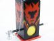 The cabinet is lacquered with images of Devil and Flames giving the magician patter possibilities. This has a built in mechanism that is a pleasure to handle. This is a well built item not flimsy of construction.