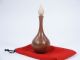 Where does one begin when a piece of magic has such incredible features setting it apart from all others ever made! This gorgeous bottle of select walnut with a maple wood stopper stands 5 3/8 inches high and is a wood turning masterpiece unlikely to ever be duplicated. The magician is able to cause the bottle to remain in a horizontal rest upon the table and when the spectators are allowed to try and duplicate this feat they always fail as the bottle bobs up into a vertical position. Nothing is added or taken away and it is made with a locking mechanism which allows examination at the conclusion of the effect. Includes 2 pages of instructions and a red velvet drawstring bag. Scant few of these were ever made putting this in the very scarce category. | |