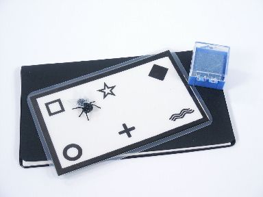 What you have is a laminated card with 6 ESP symbols and a wallet containing a personal pocket diary. Originally supplied with this was a pen which a spectator could use to gesture circling one of the symbols with the pen still capped.