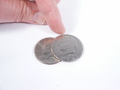 With this special gimmicked coin some beautiful close up work may be achieved. Coins through the table using a shot glass (not supplied) is a fine effect to begin with. See Modern Coin Magic for routining. Condition very fine. | |
