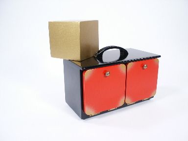 In this effect the Sliding Die Box has been re-dressed having the Die as a Block of solid Gold and the Box being referred to as a Home Safe. The block is 3 1/4 inches in size. The cabinet 8 1/2 inches x 4 3/4 inches deep x 5 inches high handle makes 7/8 inches higher. Includes 3 pages of instructions having Fred Lowe's routine. Built of wood and finished in beautiful lacquers. Condition very fine. | |