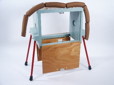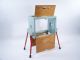 Looking a little like a Lunar Landing Space Pod this cabinet on four removable legs stands 19 inches high to the top of the cabinet and cabinet dimensions are 12 inches wide x 8 inches deep x 10 inches high. The mystery part of this cabinet is in what the builder had in mind for its use.