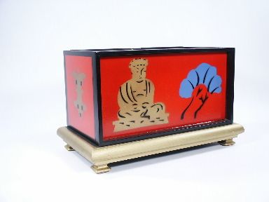 Considered by many a clever self contained Dove & Silk Production with fine workmanship and an effect that may be performed completely surrounded. A decorated box open at the top and bottom is placed on a thin platform base and immediately a sizeable silk production is made (silks not included).