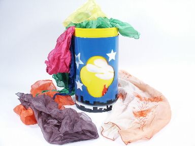 Also known as the "Da-Lite Production Tubes" with instructions by UF Grant. Two tubes nested one within the other and one being slightly higher are shown convincingly empty as the audience is able to look into the polished metal interior once the taller cylinder is removed. The illusion is really good and the load chamber will hold a good quantity to be produced. The overall dimensions with the tubes nested are 11 1/8 inches high with the diameter approximately 6 1/4 inches. This includes a handful of old production silks. This is circa 1977 and in very fine condition. | |