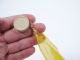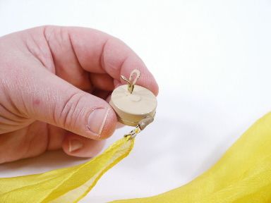 A super strong spring within this reel that has a finger clip and the attached 15 inch yellow silk enables for some lightning fast and very visual penetrations of the silk through say a cane or broom handle held vertical by a spectator. The reel has a pull length of 33 inches and one of the best pull strengths I've encountered. Condition very fine and desirable. | |
