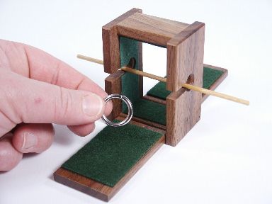A ring is placed in the bottom of this small box and the two doors are closed. The box is shaken and the ring is heard to rattle within.