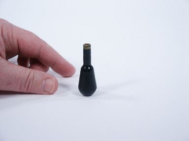 The magician is able to make this bottle that stands 2 inches high remain in a horizontal position on the table and the spectator is unable to duplicate this feat. This particular style lends itself nicely to working in the outstretched palm up hand without the gimmick. Condition very good and scarce. | |