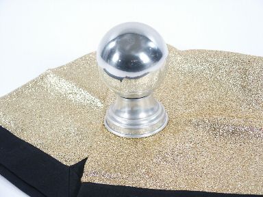 This lightweight silver zombie includes a stand and a special two finger gimmick which has snaps attached if you wish to sew the female snaps to the beautiful gold lame with black border cloth for this special outfit. Includes the Zombie routine by Will Desmond 3 pages in all with illustrations. The ball is in like new condition and the rest of outfit is in very fine to new condition. | |