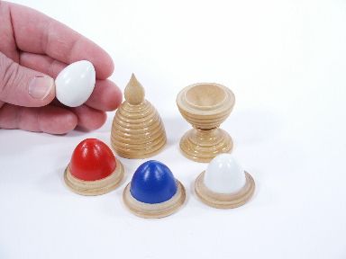 This beautiful vase of turned wood shows a red egg changing into a blue egg that in turn changes into a white egg which may then be removed! If you are one to collect turnings this should get the juices flowing. Condition very fine. Scroll down to see all pics. | |