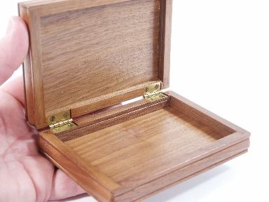This beautiful mechanical card box is the finest above all with its attention to detailing and construction and style. A secret internal mechanism activated by pressure on the outside of box at the right spot allows a secretly locked flap to unlock and drop to the other side followed by another squeeze which locks the flap in place allowing for exchange or vanish or appearance of a card or other. Will accomodate poker size cards. Wonderful things may be said about Thayer or Carl Owen but this box has no peers. Unavailable for many years since Mr. Schenks passing. In beautiful condition. | |
