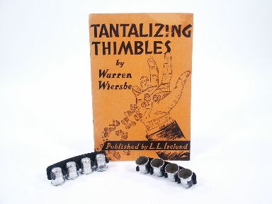 The Holders are clip type with pin backs made of metal along with 8 Thimbles and the not often seen book published by Ireland Magic Company in 1948 numbers 40 pages with 51 illustrations for much to do with Thimbles. Condition very fine. | |