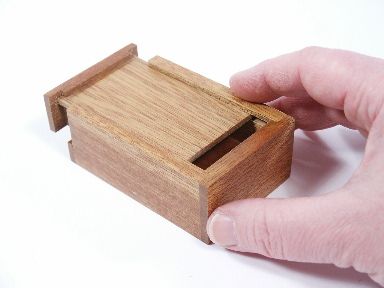 I can think of no more useful a device than this handsome solid wood box with its lustrous satin finish. As a utility device it is indispensable. If you have reason to vanish the small articles mentioned this will give you plenty of opportunity to be way ahead of the spectators as they hear the object within rattling just before setting down the box as you come away with a clean open hand. This gives perfect chance to load article into a nest of boxes or what have you. Condition first rate Collectors and includes instructions. | |