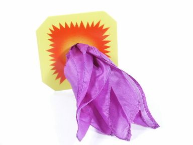 A purple silk is placed part way through a hole in a specially designed frame and as the audience watches the silk begins to move slowly through the hole getting smaller and smaller finally it vanishes altogether and the board may be tossed to a member of the audience for examination! Includes 2 pages of illustrated instructions along with frame and silk. Circa 1986 from Great Britain. Condition very fine. | |