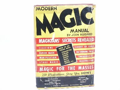 1939 6th edition cloth bound numbers 345 pages with index illustrated. Foreword by Theo Hardeen Brother of Houdini. A textbook of conjuring dealing with *The Wand *Coin *Wizardry with Watches *Rings *Balls *Eggs *Linking Rings *Silks *Cigarettes * Cigar *Thimbles *Birth of Flowers * Ropes and Cords *Bills *Out of The Hat *Mental Magic and *Playing Cards. An excellent book on magic that even the well versed would find something of use within. Dust Jacket tattered and taped. Book in very fine condition. | |