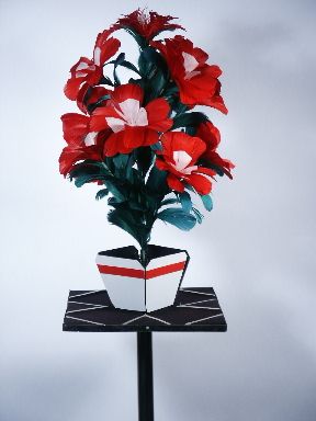 One moment the audience sees a floral display sitting alone on an undraped thin topped table. The magician walks over to the display standing beside it and in an instant the pot with flower display has vanished visibly hence the fastest trick in the world.