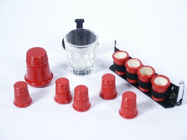 Includes 4 pages of instructions along with 39 illustrations to make learning this routine enjoyable. The thimbles have inserts that help hold the thimbles on the tips of the fingers rather than fitting all the way on the finger which makes for ease of manipulation. The rubber cover for the glass of liquid production is rather stiff from age and may need one more flexible. All in very fine condition.