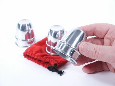 An absolutely beautiful condition set of 2 inch high cups along with drawstring bag. First Rate Collectors condition. No balls included.