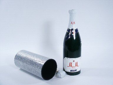 A champagne bottle is opened by removing the cork with a popping sound and a glass is filled with the champagne. The bottle is inserted into a tube and covered over with a silk (not supplied). The silk is removed and the bottle is still seen then suddenly it has vanished! The tube is empty and a silk fountain (not supplied) has appeared in the hand! Of all the various bottle vanishes this is one of the finest and from Germany. Includes instructions and in new condition. | |