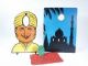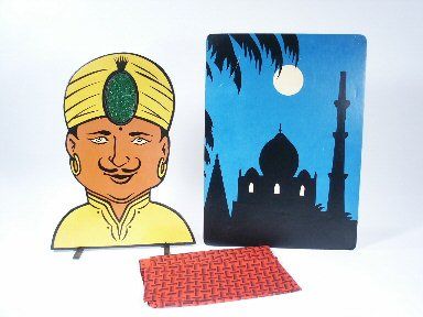 An emerald is removed from the turban of the Rajah and wrapped in a cloth given to a child. The cloth is snatched away and the jewel has vanished and checking the turban it is not back in place as first thought. It is discovered on the back of the assistant with much audience response. The jewel again vanishes and this time it does appear back in the turban! The Rajah stands 13 1/2 inches high and the emerald jewel is 3 1/2 inches oval. Includes special cloth and silk screened picture card to stand in front of the Rajah. Includes 2 pages of instructions. Condition very good. | |