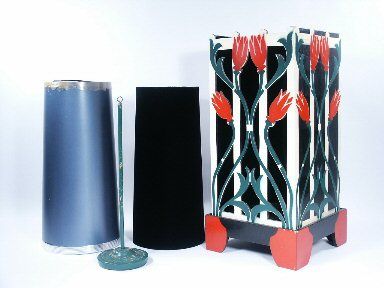 The catalog description stated this was a built to special order only and this is a rare Thayer item. All parts are shown empty and a tabouret is made of the chimney and base. An empty pot (not included) is set upon the stand and covered with the cone. When lifted a beautiful growth of live flowers is displayed! If desired an artificial arrangement of flowers may be used (not included).
