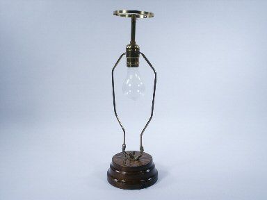 A numbered unit made by Tosi for the effect of causing milk to vanish from a rolled cone of paper and appearing inside of a light bulb! With this unit the lighting device is actually lowered into the milk in the bulb and retracted for the conclusion. Once the bulb is switched on there is an automatic delay timer built in to cause the bulb to go out which works fine.