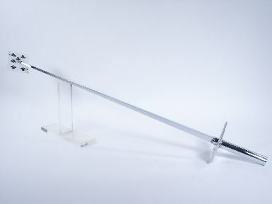 A metal sword with hilt designed for concealment of for either one two or three cards as in the traditional routine. Sword length is 29 1/2 inches and handle has a couple of tiny dings next to end possibly made during manufacturing process otherwise very fine condition. Includes instructions.