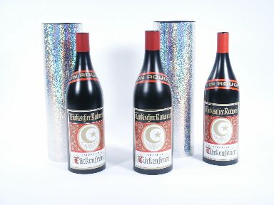 These are very nice looking bottles made of metal and the tubes for covering are light weight with all nesting into one tube for easy transport. The bottles are a little over 11 inches high. The comedy aspect of this effect comes into play when an assistant steals away one bottle yet the trick continues. Includes instructions. Condition very fine. | |