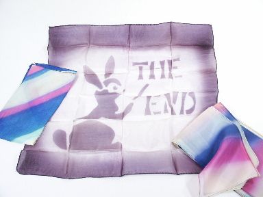 Includes a Rainbow Streamer 5 inches wide x 11 foot long plus a Diagonal Rainbow 18 inch silk plus 18 inch The End Rabbit Silk. All in new unused condition.
