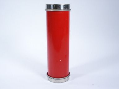 10 inches long with a 3 inch diameter and trademarked stamped on the gimmick insert. A 3 inch long dent in sidewall of tube retaining rings for tissue in perfect condition. | |