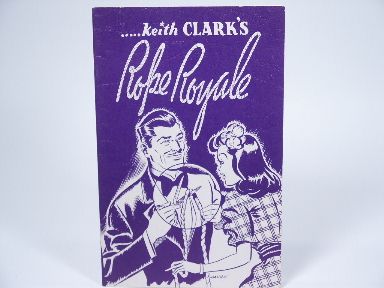 1974 3rd Printing Keith Clark's Rope Royale Harold R. Rice. Soft bound 14 pages illustrated. Contains information on: *As The Spectator Sees It *The Rope To Use *Preparation *Presentation *Restoration *Knots Reappear *Knots 'Dissolve *Samples *Patriotic Rope Royal. Condition first rate Collector's. | |