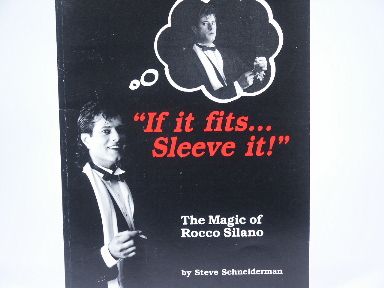 1990 If It Fits Sleeve It! The Magic of Rocco Silano by Steve Schneiderman. Soft bound 71 pages with photographs and illustrations. Contains chapters on: *Sleeving Techniques *Coin Magic *Cigarette Magic *Card Magic *Fire Magic *Close Up Applications and *Stage Applications. Previous owners embosser. Crease front cover and lightly on back cover otherwise condition very good. | |