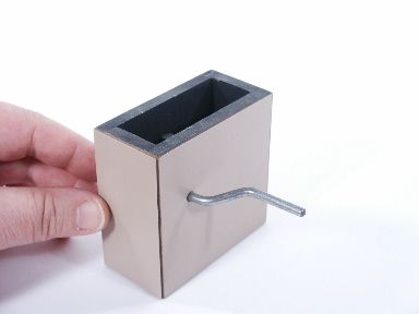 From Great Britain. A borrowed gold ring is placed into the grinding machine and ground up to gold dust. The dust is poured into a piece of tissue paper and rolled into a bundle which is pierced with a hat pin and held over the mouth of a small wine glass. The owner of the ring is asked to touch the tissue bundle with a match or lighted cigarette and a flash occurs and the ring is restored suspended on the pin! Includes the grinding machine and instructions with other properties not supplied. Condition very fine. | |