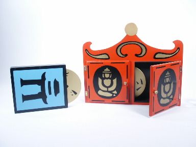 The pagoda tube measures 6 inches wide x 7 inches high x 1 1/4 inch deep is shown to have a large gold coin 5 inches in diameter that is placed behind one of the doors and the door closed. Gently tilting the temple one way or another the doors are opened one at a time showing the coin has vanished!