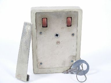 This Rising Cards is a clockwork mechanism having two wheels and a pressure blade to assist in bringing the cards up one at a time with a several second delay in which the wheels stop that is built in to the mechanism. Handmade perfection including the key for winding the clockwork and trademark stamped. Condition very fine. This item was acquired from Jon Martin and owned by Richard Himber. The Jon Martin items are the absolute finest and few are fortunate to claim ownership of the genuine article and those that do will tell you nothing else compares. Jon Martin passed away in 1968 at the age of 87 years and there is no evidence of his equal today. | |