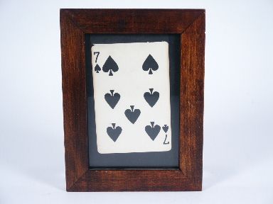 The top edge of this door is rounded smooth similar to what has been known as the Presto Card Frame. In this case a printed paper giving the appearance of a playing card is within the frame and this paper has a longer piece printed black so as not to be seen in the frame.