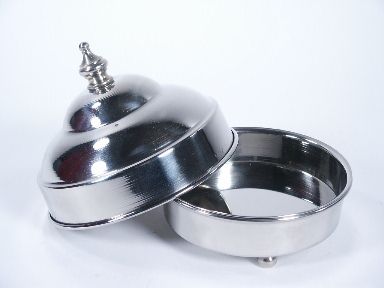 One of my particular favorite designs this is a beauty and the finish is superb. The pan stands 4" high and has a 5" diameter. An absolute pleasure to work with and this one in almost new condition. | |