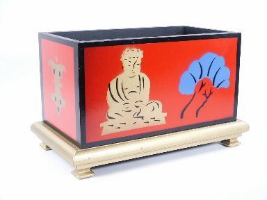The cabinet measures 15" wide x 8 1/2" deep x 8" high and the ornate base only adds 2 1/2" to the height. Includes instructions and easy to perform. Condition very fine.