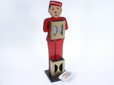This 18" high Page Boy is made of wood stencil lacquered in colors assists in holding a houlette that will accept cards brought from the lower houlette.