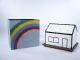 Showing a large wooden tube with a rainbow of color painted upon it the tube is lowered over the black and white house but not before showing it completely empty. When lifted away the tube is shown empty as it is laid aside but now the house is painted in beautiful colors! Taking this a step further the house is lifted away and a rabbit full of life is shown!